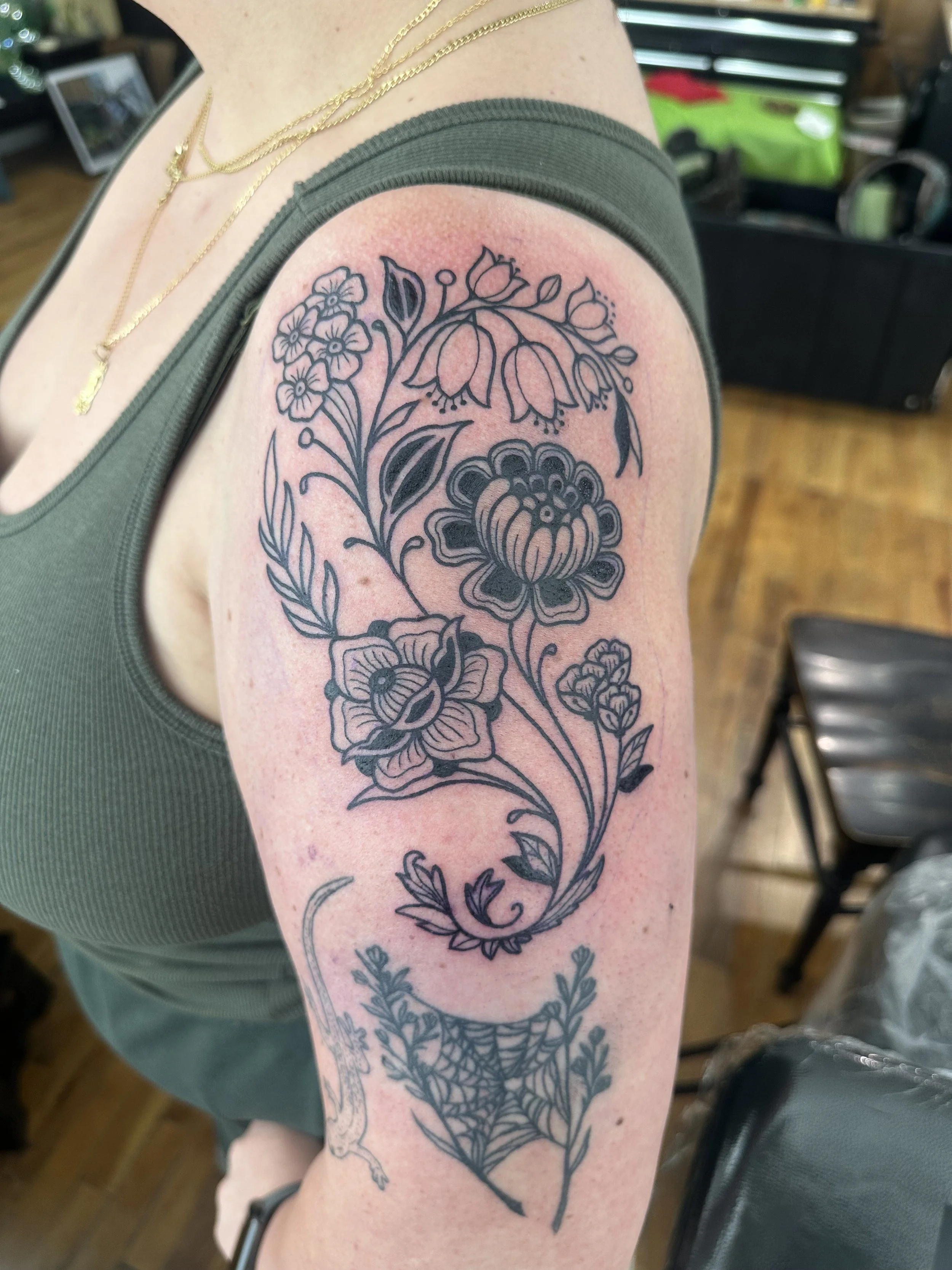 neotraditional, fineline, woodcut, lettering, nature, floral, animals, ornamental, occult, patchwork